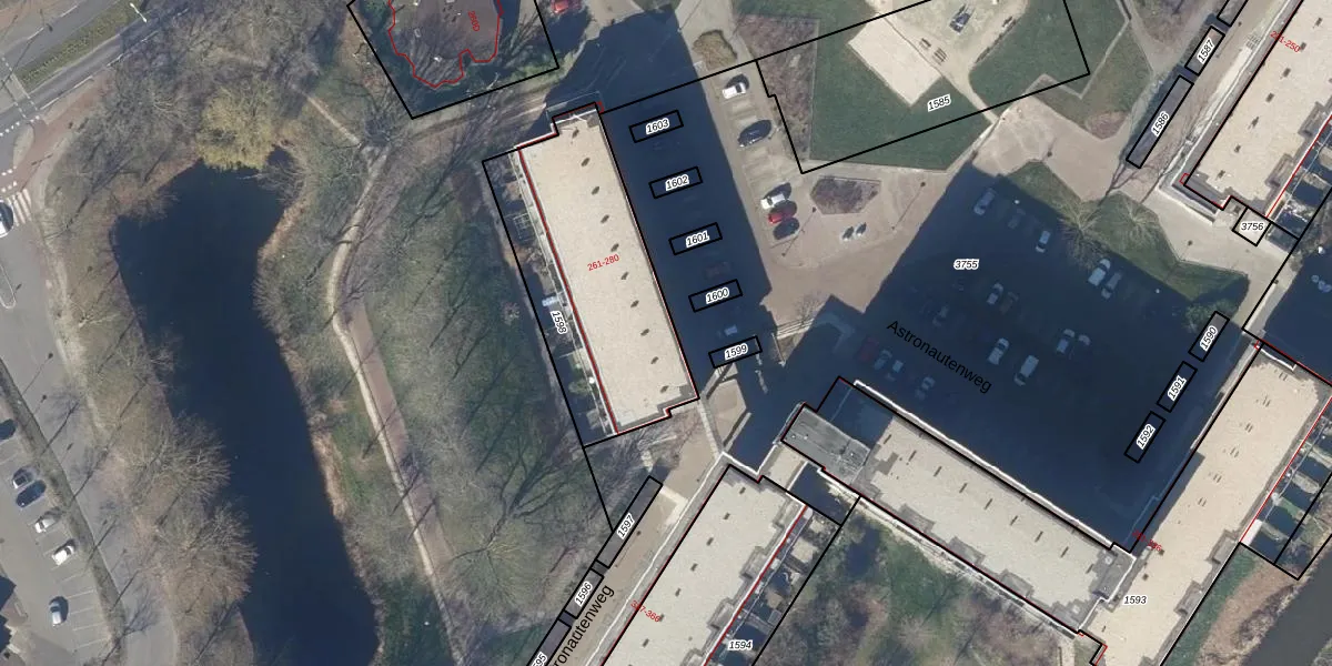 Het perceel waarop Astronautenweg 268 staat heeft een oppervlakte van 877 m². Dit is een groot perceel. De perceeloppervlakte wordt geregistreerd door het Kadaster. Gedetailleerde informatie over de maten van dit perceel kunt u vinden in het rapport Kadastrale kaart met maatvoering van Astronautenweg 268.