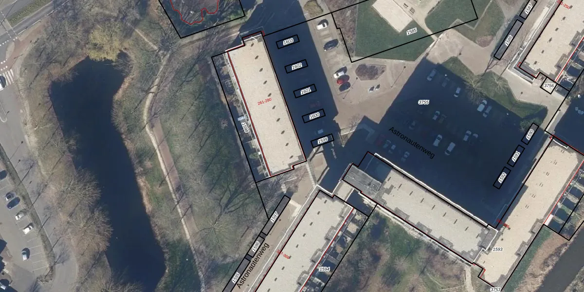 Het perceel waarop Astronautenweg 269 staat heeft een oppervlakte van 877 m². Dit is een groot perceel. De perceeloppervlakte wordt geregistreerd door het Kadaster. Gedetailleerde informatie over de maten van dit perceel kunt u vinden in het rapport Kadastrale kaart met maatvoering van Astronautenweg 269.