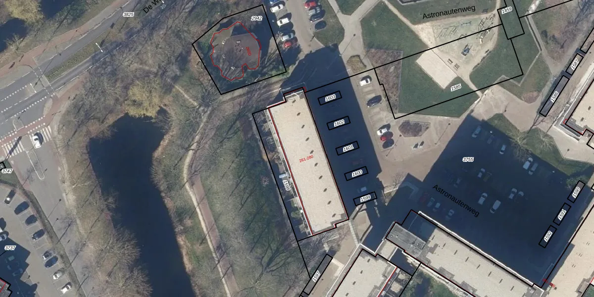 Het perceel waarop Astronautenweg 274 staat heeft een oppervlakte van 877 m². Dit is een groot perceel. De perceeloppervlakte wordt geregistreerd door het Kadaster. Gedetailleerde informatie over de maten van dit perceel kunt u vinden in het rapport Kadastrale kaart met maatvoering van Astronautenweg 274.