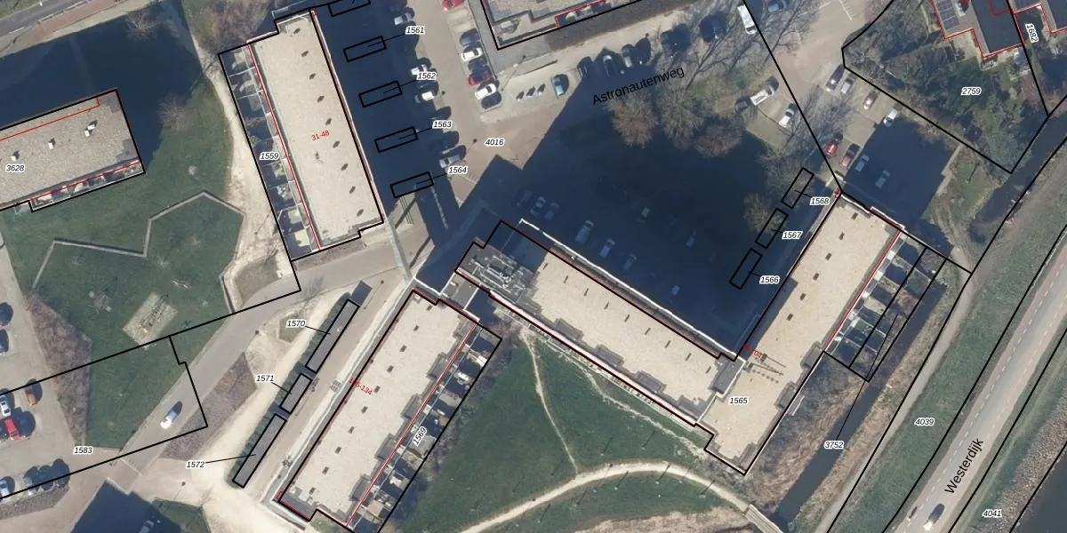 Het perceel waarop Astronautenweg 84 staat heeft een oppervlakte van 1547 m². Dit is een zeer groot perceel. De perceeloppervlakte wordt geregistreerd door het Kadaster. Gedetailleerde informatie over de maten van dit perceel kunt u vinden in het rapport Kadastrale kaart met maatvoering van Astronautenweg 84.