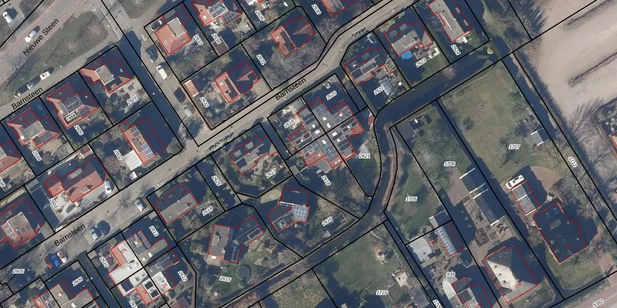 Het perceel waarop Barnsteen 22 staat heeft een oppervlakte van 370 m². Dit is een groot perceel. De perceeloppervlakte wordt geregistreerd door het Kadaster. Gedetailleerde informatie over de maten van dit perceel kunt u vinden in het rapport Kadastrale kaart met maatvoering van Barnsteen 22.
