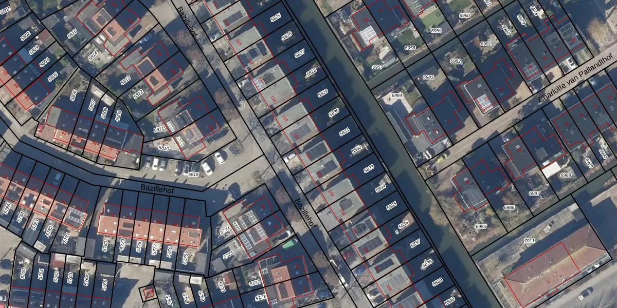 Het perceel waarop Bazillehof 121 staat heeft een oppervlakte van 191 m². Dit is een middelgroot perceel. De perceeloppervlakte wordt geregistreerd door het Kadaster. Gedetailleerde informatie over de maten van dit perceel kunt u vinden in het rapport Kadastrale kaart met maatvoering van Bazillehof 121.