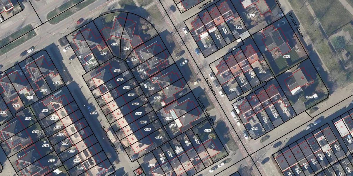 Het perceel waarop Bertus Aafjeshof 21 staat heeft een oppervlakte van 222 m². Dit is een middelgroot perceel. De perceeloppervlakte wordt geregistreerd door het Kadaster. Gedetailleerde informatie over de maten van dit perceel kunt u vinden in het rapport Kadastrale kaart met maatvoering van Bertus Aafjeshof 21.