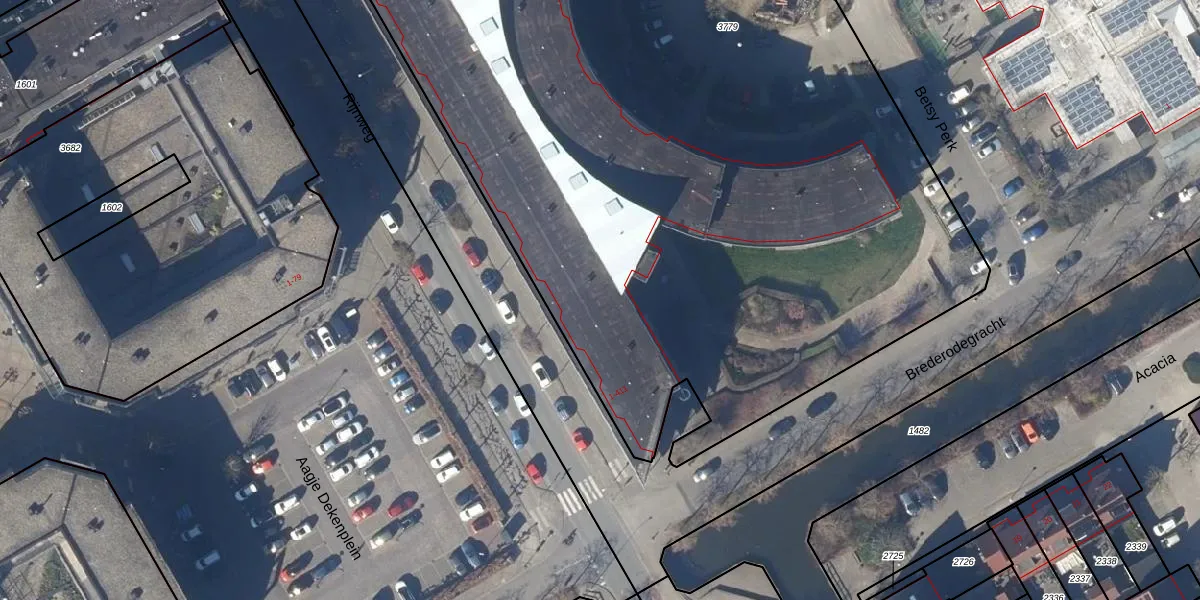 Het perceel waarop Betsy Perk 104 staat heeft een oppervlakte van 9855 m². Dit is een zeer groot perceel. De perceeloppervlakte wordt geregistreerd door het Kadaster. Gedetailleerde informatie over de maten van dit perceel kunt u vinden in het rapport Kadastrale kaart met maatvoering van Betsy Perk 104.