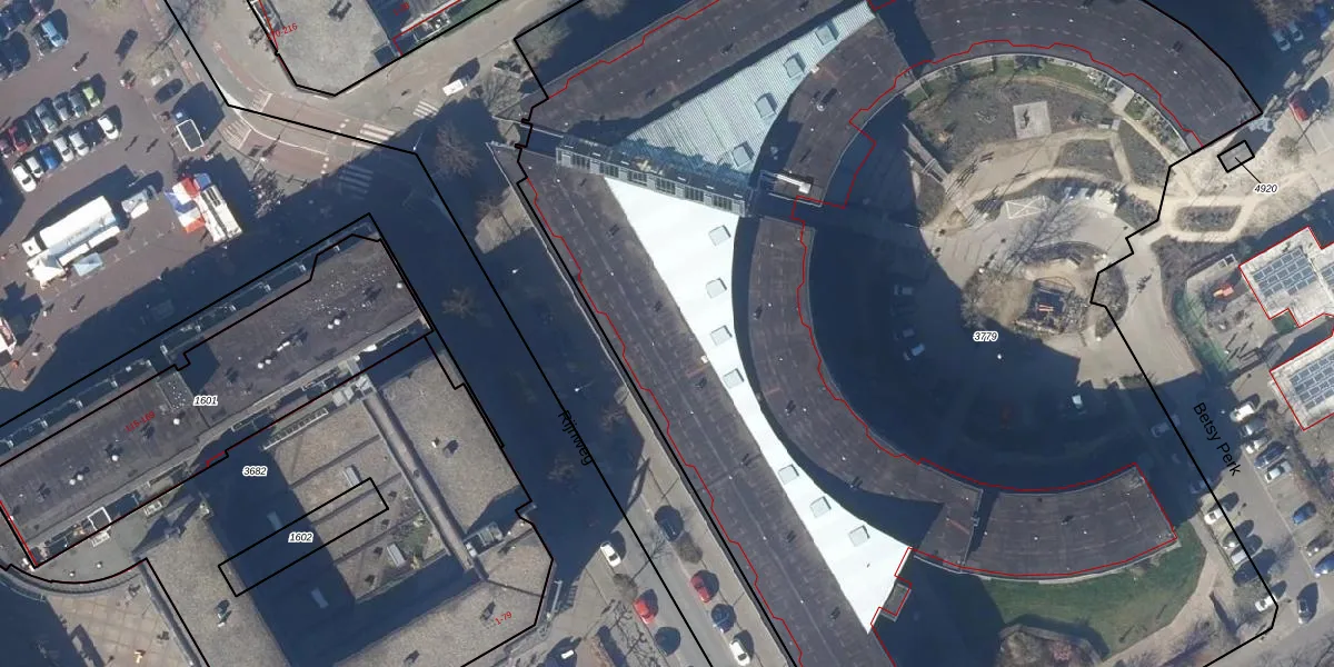 Het perceel waarop Betsy Perk 112 staat heeft een oppervlakte van 9855 m². Dit is een zeer groot perceel. De perceeloppervlakte wordt geregistreerd door het Kadaster. Gedetailleerde informatie over de maten van dit perceel kunt u vinden in het rapport Kadastrale kaart met maatvoering van Betsy Perk 112.