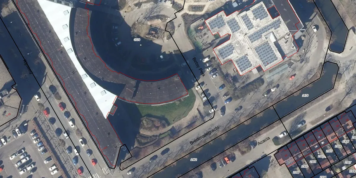 Het perceel waarop Betsy Perk 125 staat heeft een oppervlakte van 9855 m². Dit is een zeer groot perceel. De perceeloppervlakte wordt geregistreerd door het Kadaster. Gedetailleerde informatie over de maten van dit perceel kunt u vinden in het rapport Kadastrale kaart met maatvoering van Betsy Perk 125.
