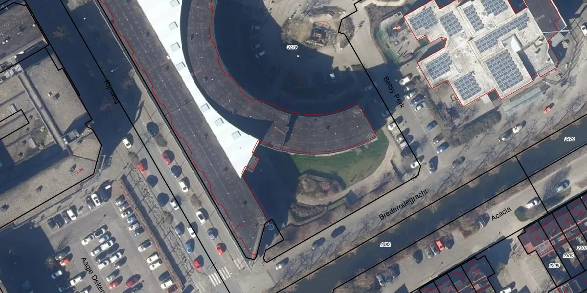 Het perceel waarop Betsy Perk 25 staat heeft een oppervlakte van 9855 m². Dit is een zeer groot perceel. De perceeloppervlakte wordt geregistreerd door het Kadaster. Gedetailleerde informatie over de maten van dit perceel kunt u vinden in het rapport Kadastrale kaart met maatvoering van Betsy Perk 25.