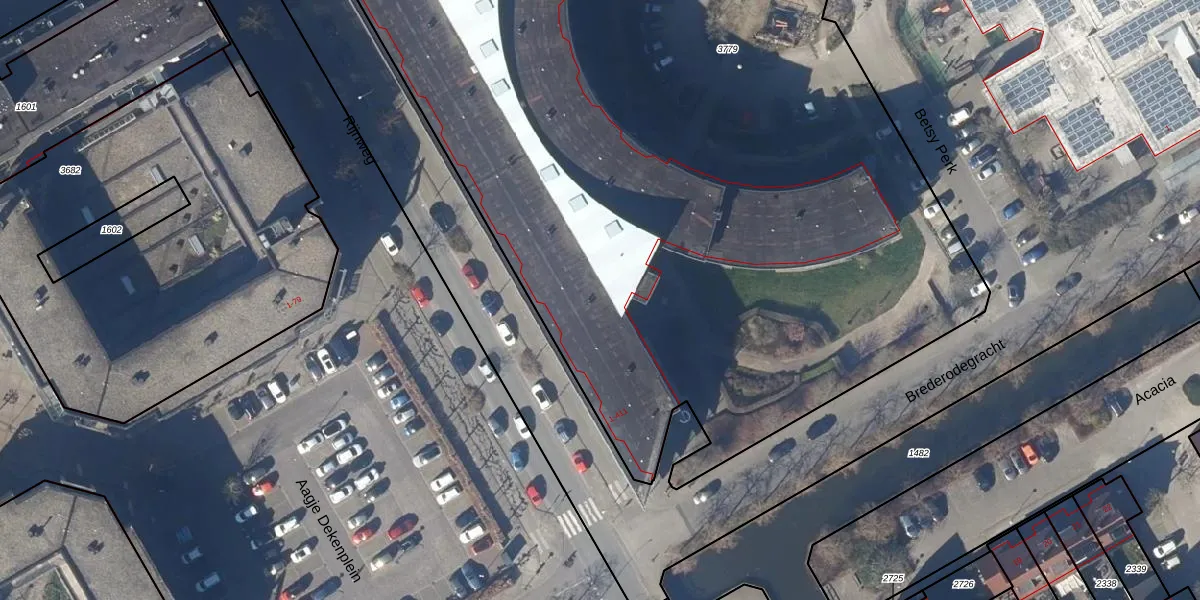 Het perceel waarop Betsy Perk 4 staat heeft een oppervlakte van 9855 m². Dit is een zeer groot perceel. De perceeloppervlakte wordt geregistreerd door het Kadaster. Gedetailleerde informatie over de maten van dit perceel kunt u vinden in het rapport Kadastrale kaart met maatvoering van Betsy Perk 4.