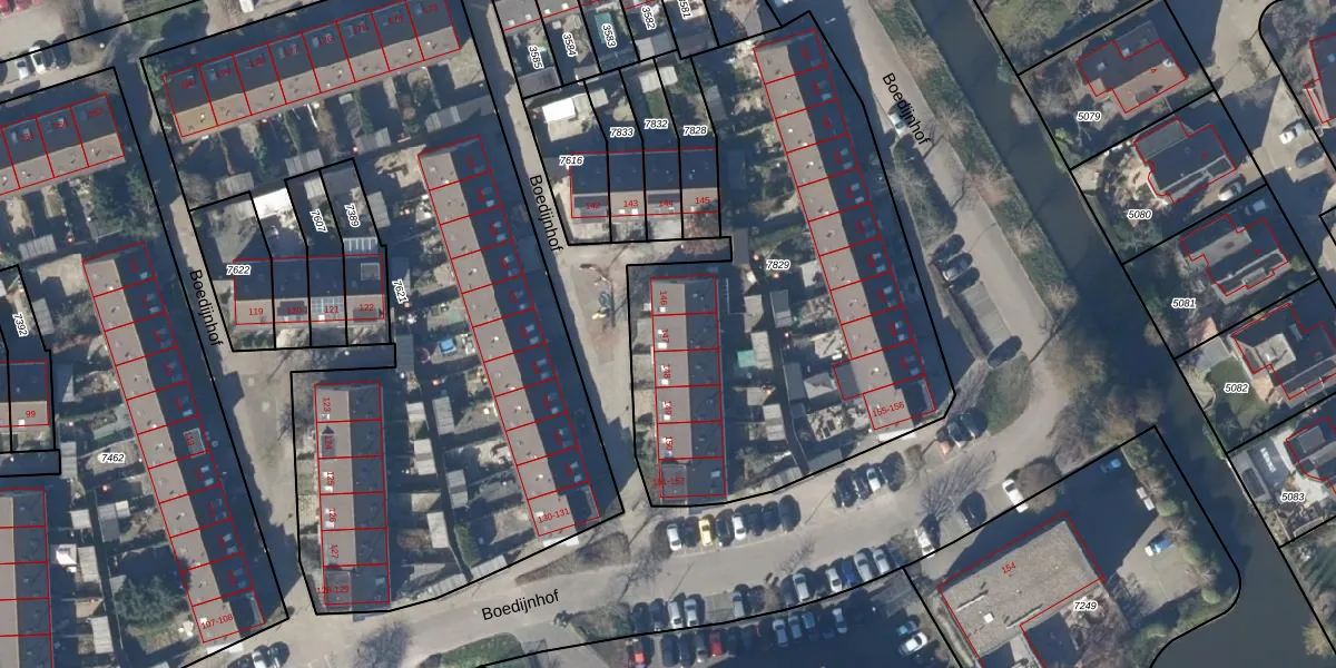 Het perceel waarop Boedijnhof 147 staat heeft een oppervlakte van 2285 m². Dit is een zeer groot perceel. De perceeloppervlakte wordt geregistreerd door het Kadaster. Gedetailleerde informatie over de maten van dit perceel kunt u vinden in het rapport Kadastrale kaart met maatvoering van Boedijnhof 147.