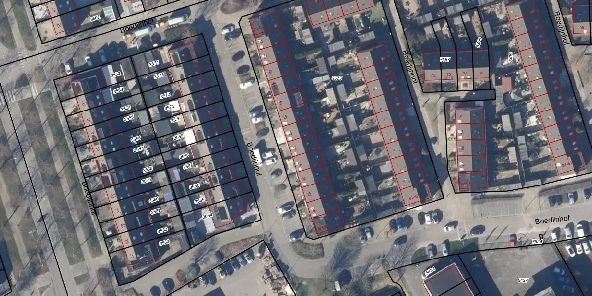 Boedijnhof 54 is gelegen op kadastraal perceel HOO00K3575. Deze kadastrale aanduiding is uniek en wordt gebruikt door het Kadaster om eigendomsrechten en andere zakelijke rechten vast te leggen. Het perceel maakt onderdeel uit van de kadastrale gemeente Hoorn.