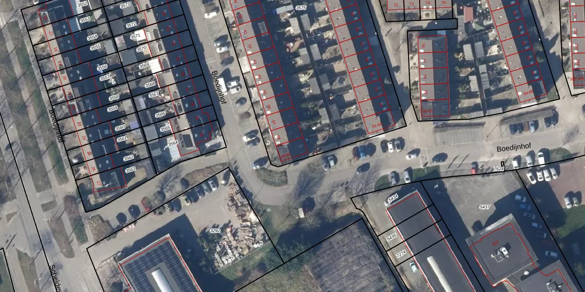 Het perceel waarop Boedijnhof 60 staat heeft een oppervlakte van 3868 m². Dit is een zeer groot perceel. De perceeloppervlakte wordt geregistreerd door het Kadaster. Gedetailleerde informatie over de maten van dit perceel kunt u vinden in het rapport Kadastrale kaart met maatvoering van Boedijnhof 60.