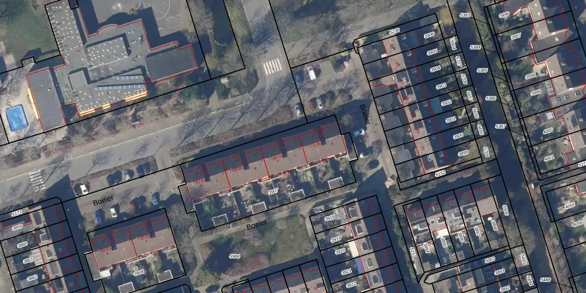 Het perceel waarop Boeier 72 staat heeft een oppervlakte van 1387 m². Dit is een zeer groot perceel. De perceeloppervlakte wordt geregistreerd door het Kadaster. Gedetailleerde informatie over de maten van dit perceel kunt u vinden in het rapport Kadastrale kaart met maatvoering van Boeier 72.
