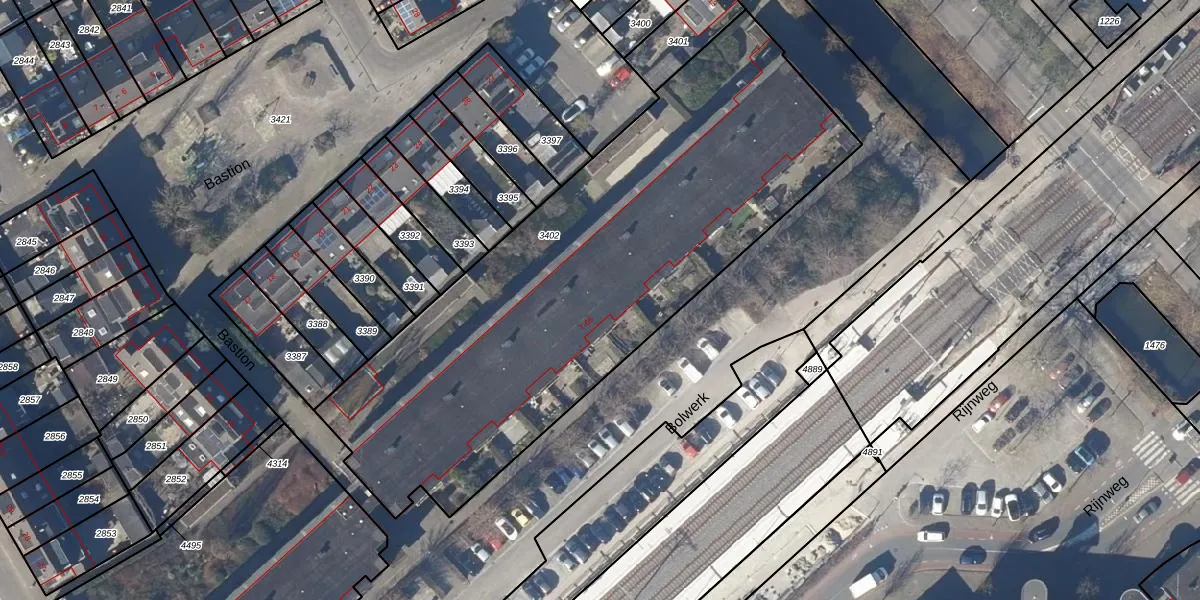 Het perceel waarop Bolwerk 13 staat heeft een oppervlakte van 2805 m². Dit is een zeer groot perceel. De perceeloppervlakte wordt geregistreerd door het Kadaster. Gedetailleerde informatie over de maten van dit perceel kunt u vinden in het rapport Kadastrale kaart met maatvoering van Bolwerk 13.