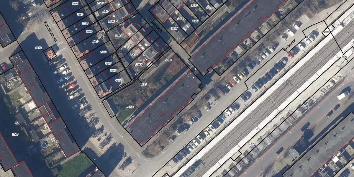 Het perceel waarop Bolwerk 49 staat heeft een oppervlakte van 1526 m². Dit is een zeer groot perceel. De perceeloppervlakte wordt geregistreerd door het Kadaster. Gedetailleerde informatie over de maten van dit perceel kunt u vinden in het rapport Kadastrale kaart met maatvoering van Bolwerk 49.