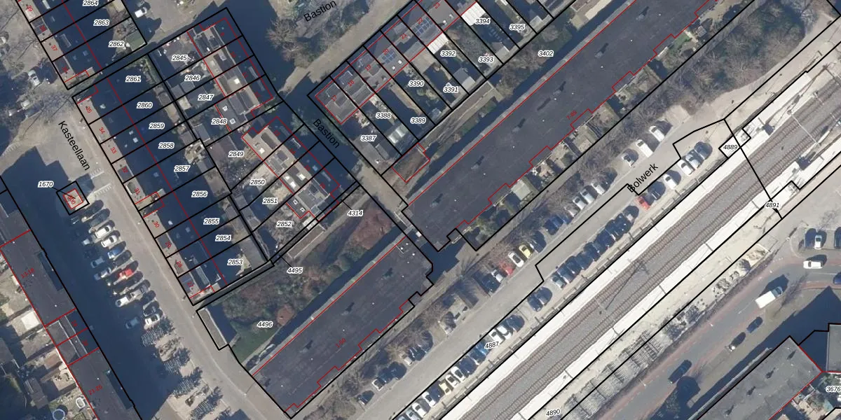 Het perceel waarop Bolwerk 51 staat heeft een oppervlakte van 2805 m². Dit is een zeer groot perceel. De perceeloppervlakte wordt geregistreerd door het Kadaster. Gedetailleerde informatie over de maten van dit perceel kunt u vinden in het rapport Kadastrale kaart met maatvoering van Bolwerk 51.
