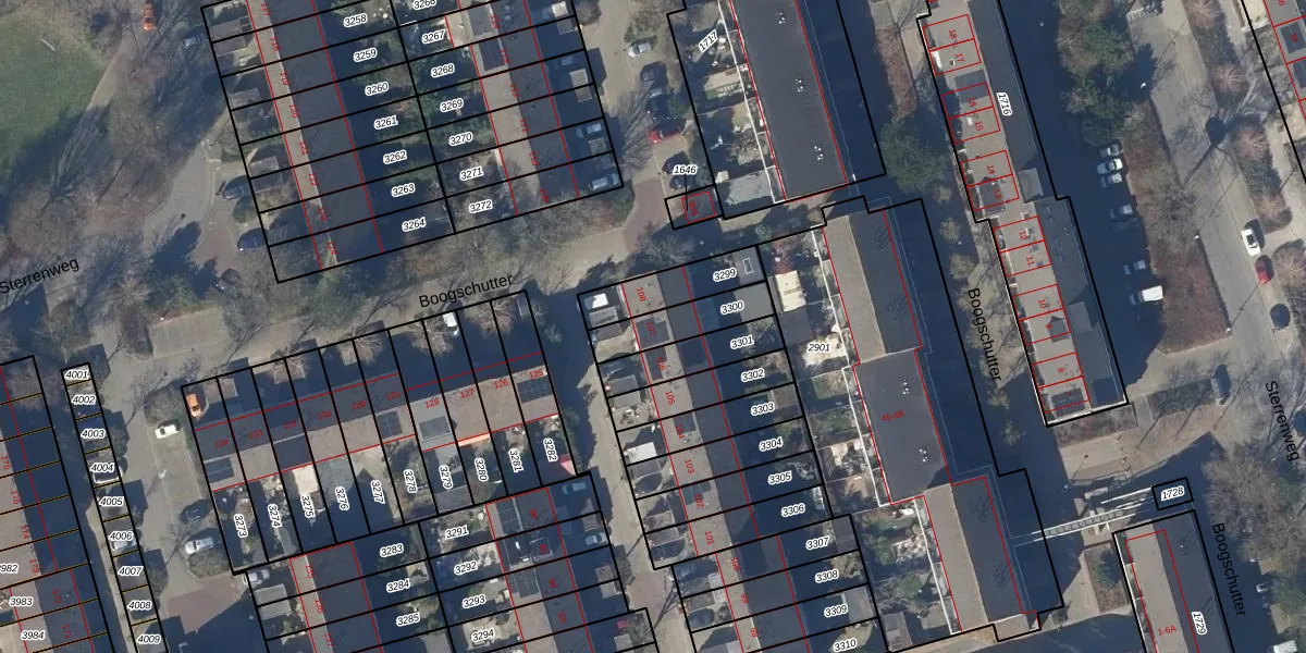 Gebruik de zoekbalk of klik op een perceel voor informatie over de adressen binnen dit perceel.