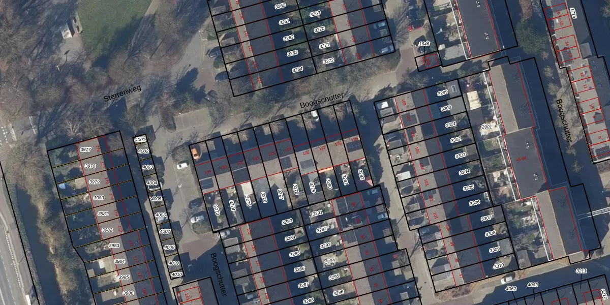Gebruik de zoekbalk of klik op een perceel voor informatie over de adressen binnen dit perceel.