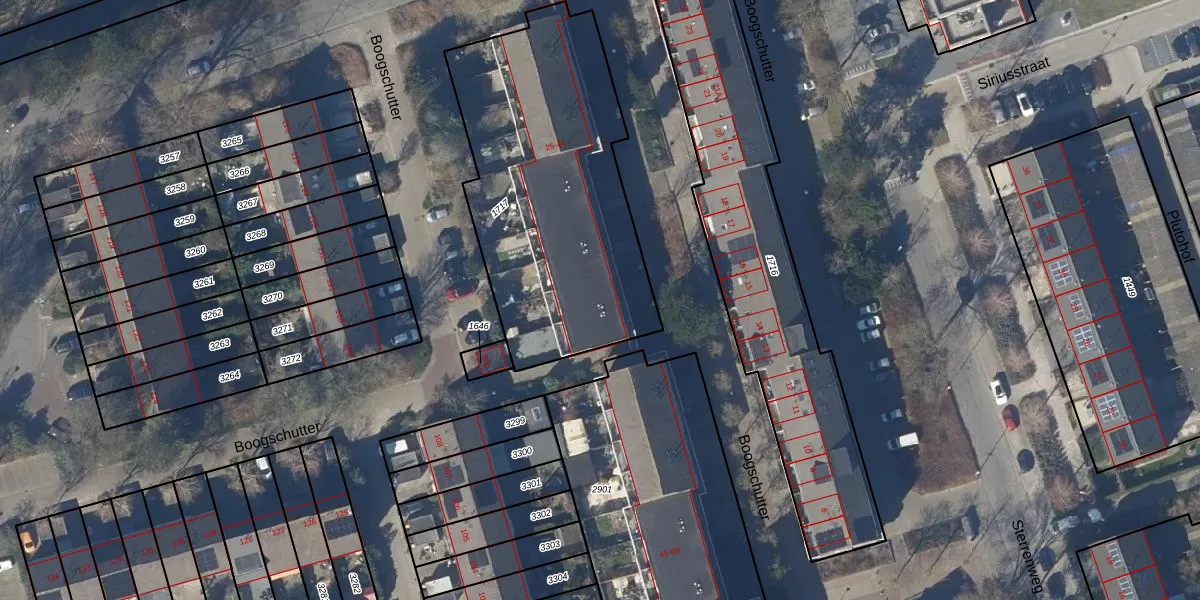 Het perceel waarop Boogschutter 33 staat heeft een oppervlakte van 1425 m². Dit is een zeer groot perceel. De perceeloppervlakte wordt geregistreerd door het Kadaster. Gedetailleerde informatie over de maten van dit perceel kunt u vinden in het rapport Kadastrale kaart met maatvoering van Boogschutter 33.
