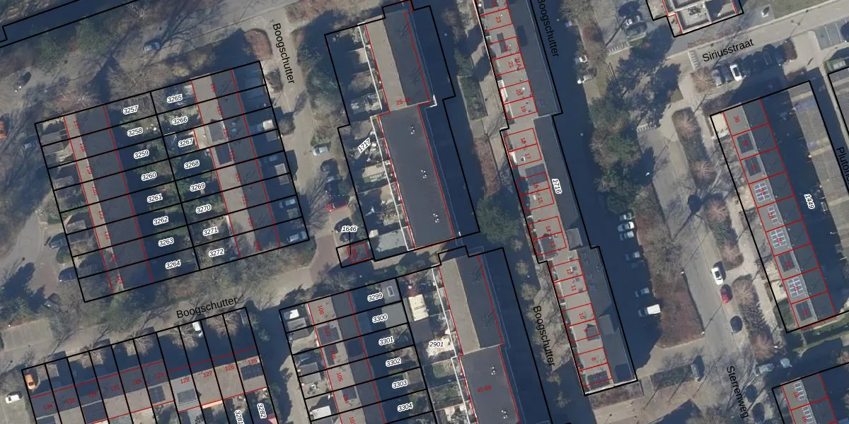 Het perceel waarop Boogschutter 43 staat heeft een oppervlakte van 1425 m². Dit is een zeer groot perceel. De perceeloppervlakte wordt geregistreerd door het Kadaster. Gedetailleerde informatie over de maten van dit perceel kunt u vinden in het rapport Kadastrale kaart met maatvoering van Boogschutter 43.