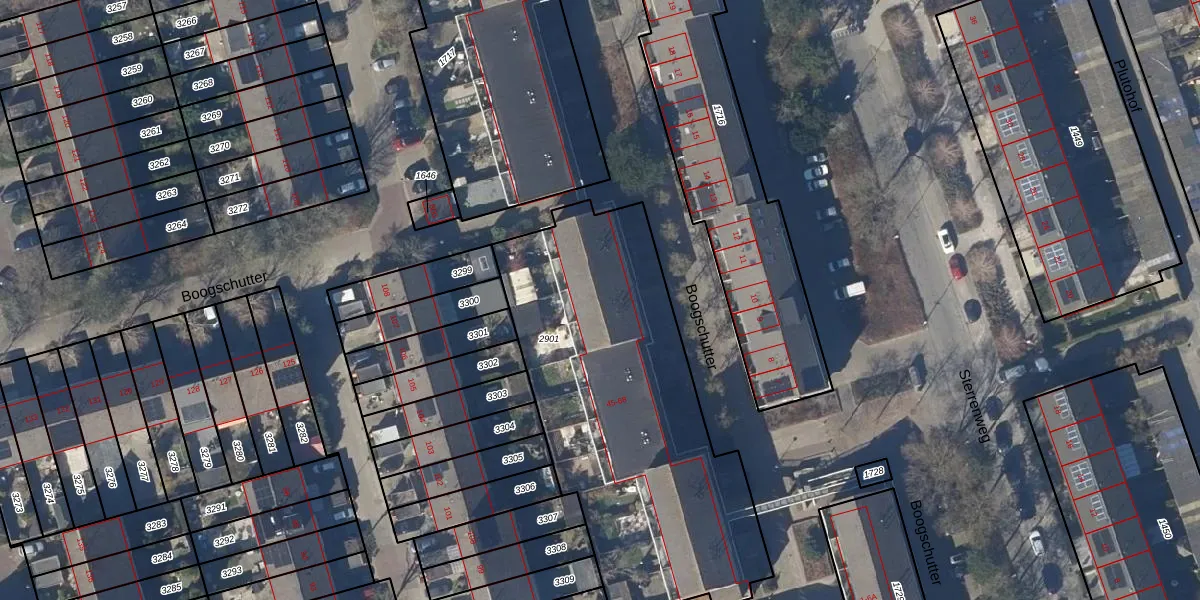 Het perceel waarop Boogschutter 59 staat heeft een oppervlakte van 1780 m². Dit is een zeer groot perceel. De perceeloppervlakte wordt geregistreerd door het Kadaster. Gedetailleerde informatie over de maten van dit perceel kunt u vinden in het rapport Kadastrale kaart met maatvoering van Boogschutter 59.