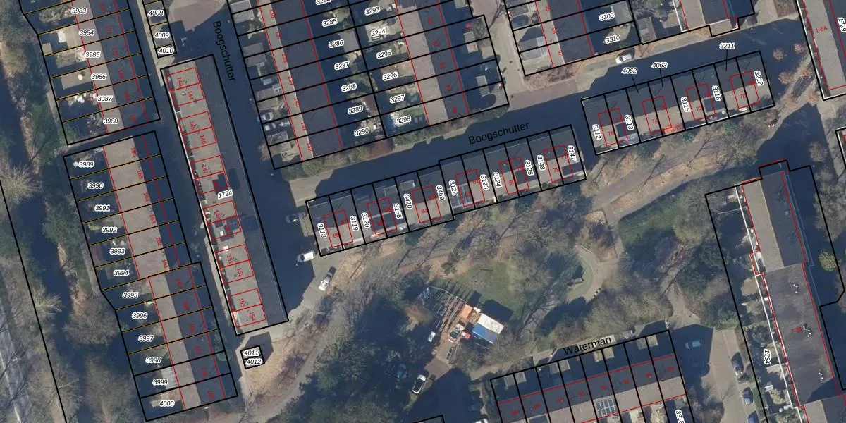 Gebruik de zoekbalk of klik op een perceel voor informatie over de adressen binnen dit perceel.