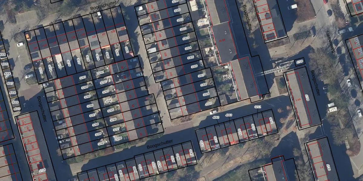 Gebruik de zoekbalk of klik op een perceel voor informatie over de adressen binnen dit perceel.