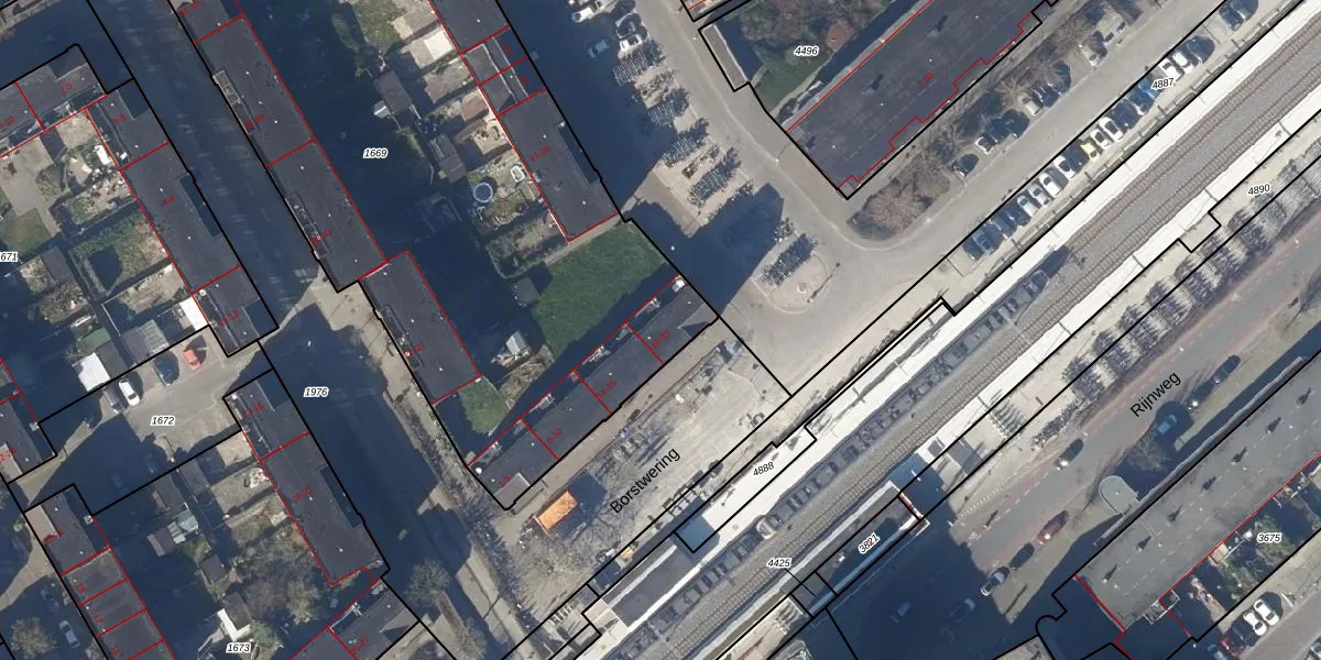 Het perceel waarop Borstwering 17 staat heeft een oppervlakte van 3724 m². Dit is een zeer groot perceel. De perceeloppervlakte wordt geregistreerd door het Kadaster. Gedetailleerde informatie over de maten van dit perceel kunt u vinden in het rapport Kadastrale kaart met maatvoering van Borstwering 17.