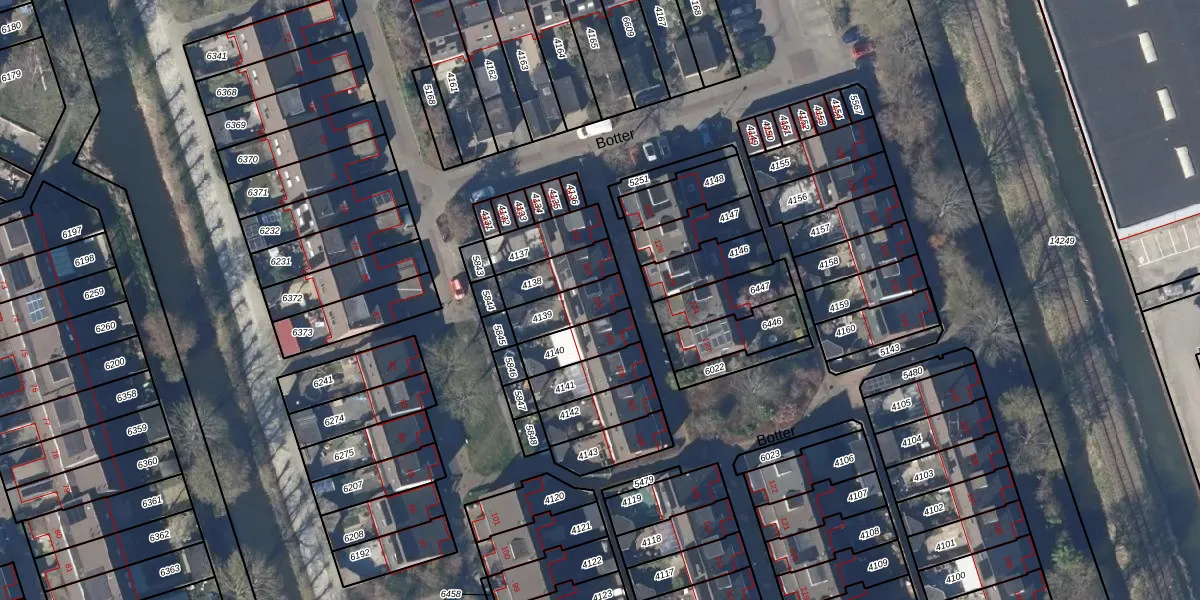 Het perceel waarop Botter 104 staat heeft een oppervlakte van 120 m². Dit is een middelgroot perceel. De perceeloppervlakte wordt geregistreerd door het Kadaster. Gedetailleerde informatie over de maten van dit perceel kunt u vinden in het rapport Kadastrale kaart met maatvoering van Botter 104.