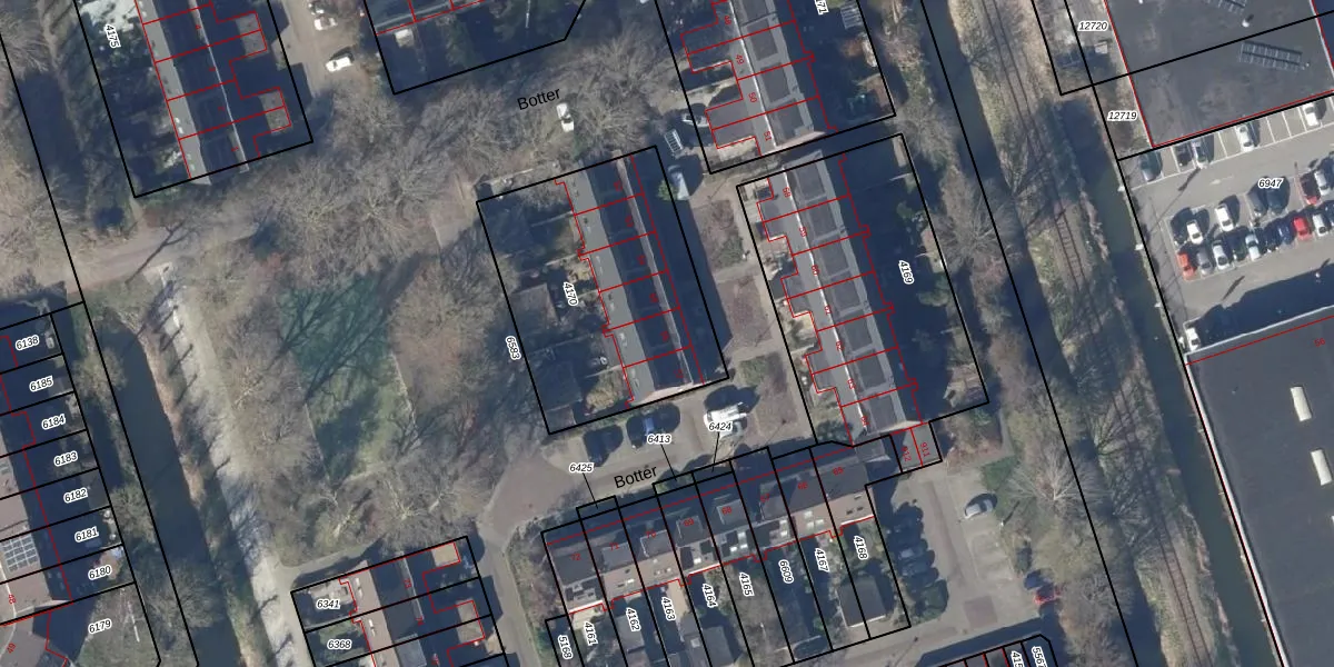 Het perceel waarop Botter 56 staat heeft een oppervlakte van 1034 m². Dit is een zeer groot perceel. De perceeloppervlakte wordt geregistreerd door het Kadaster. Gedetailleerde informatie over de maten van dit perceel kunt u vinden in het rapport Kadastrale kaart met maatvoering van Botter 56.