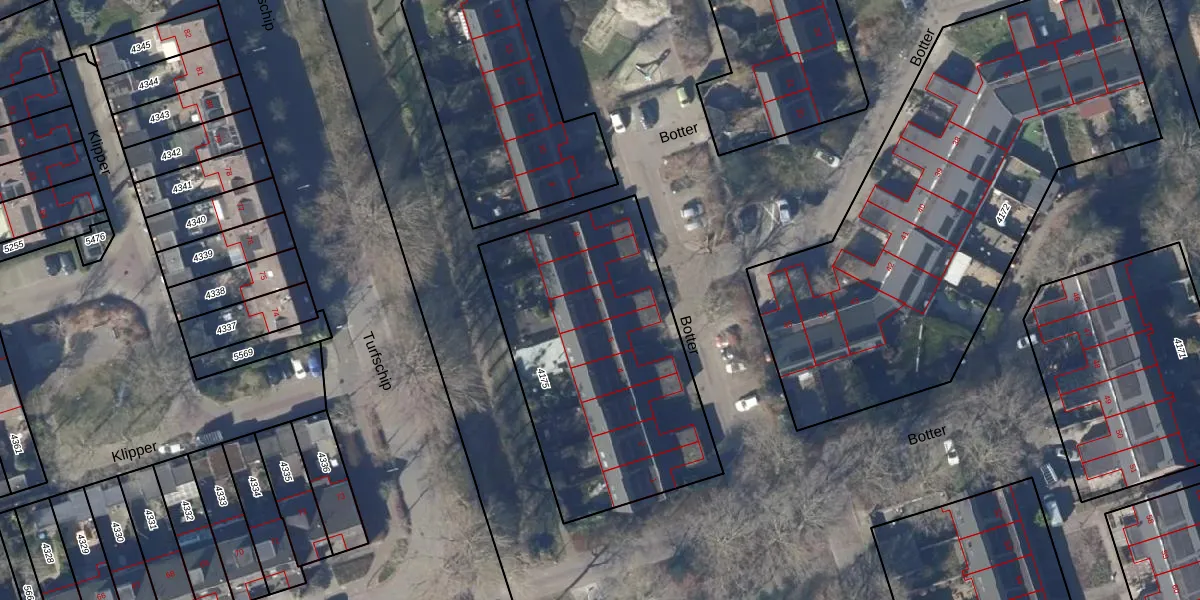 Het perceel waarop Botter 6 staat heeft een oppervlakte van 1339 m². Dit is een zeer groot perceel. De perceeloppervlakte wordt geregistreerd door het Kadaster. Gedetailleerde informatie over de maten van dit perceel kunt u vinden in het rapport Kadastrale kaart met maatvoering van Botter 6.