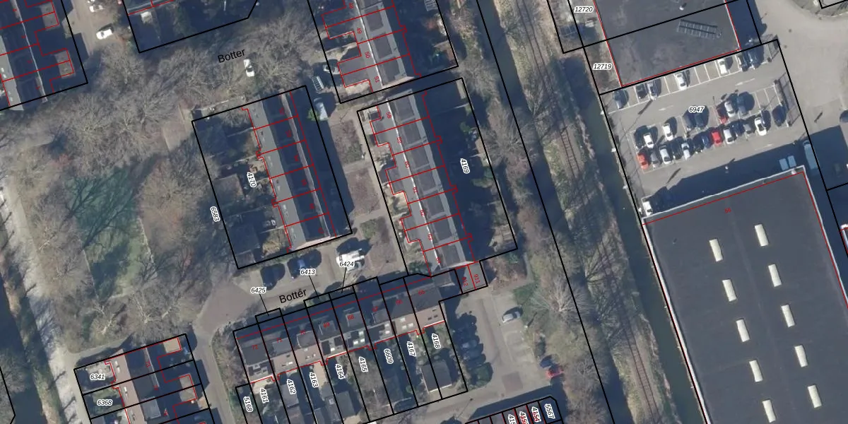 Het perceel waarop Botter 62 staat heeft een oppervlakte van 1143 m². Dit is een zeer groot perceel. De perceeloppervlakte wordt geregistreerd door het Kadaster. Gedetailleerde informatie over de maten van dit perceel kunt u vinden in het rapport Kadastrale kaart met maatvoering van Botter 62.