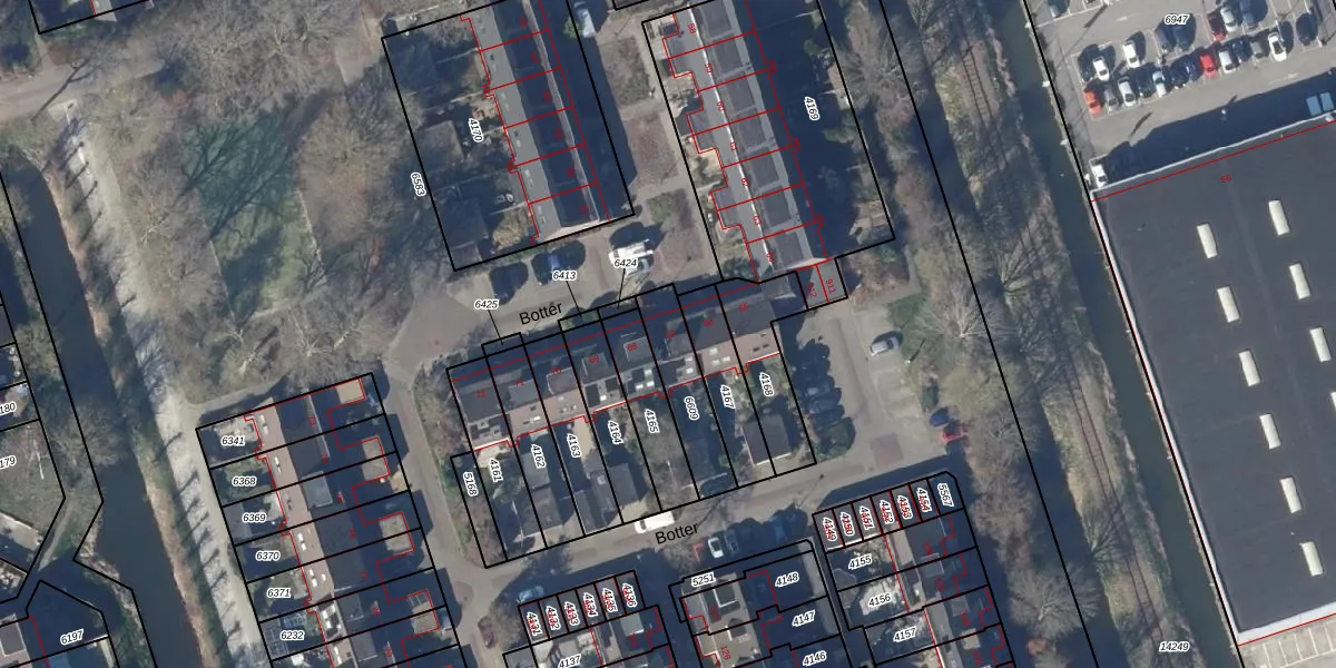Het perceel waarop Botter 67 staat heeft een oppervlakte van 192 m². Dit is een middelgroot perceel. De perceeloppervlakte wordt geregistreerd door het Kadaster. Gedetailleerde informatie over de maten van dit perceel kunt u vinden in het rapport Kadastrale kaart met maatvoering van Botter 67.