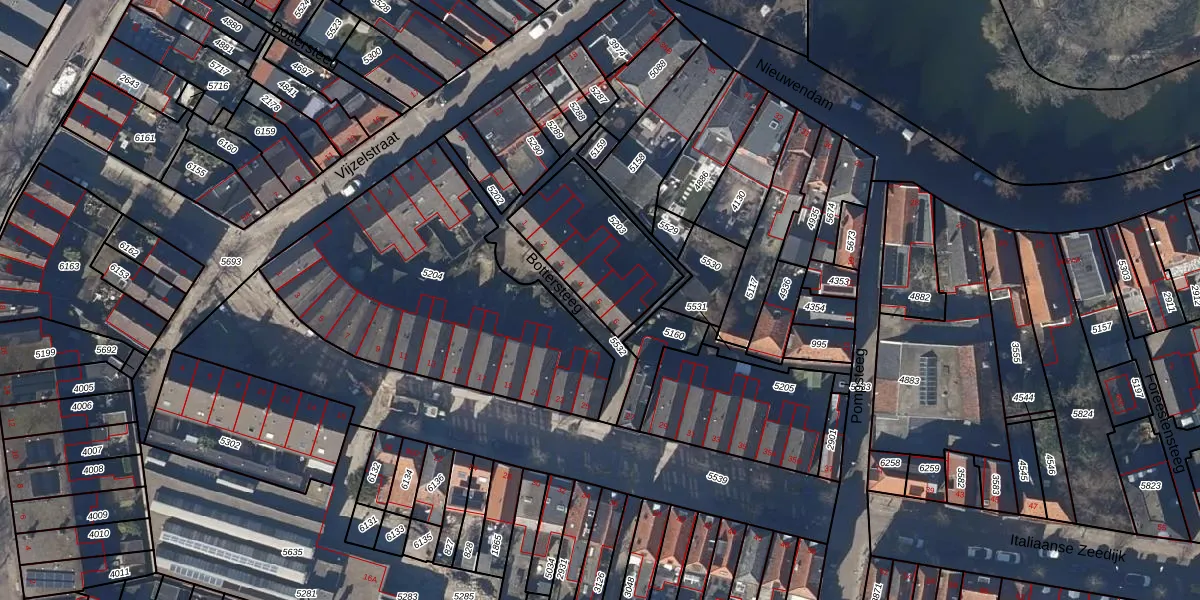 Het perceel waarop Bottersteeg 5 staat heeft een oppervlakte van 412 m². Dit is een groot perceel. De perceeloppervlakte wordt geregistreerd door het Kadaster. Gedetailleerde informatie over de maten van dit perceel kunt u vinden in het rapport Kadastrale kaart met maatvoering van Bottersteeg 5.