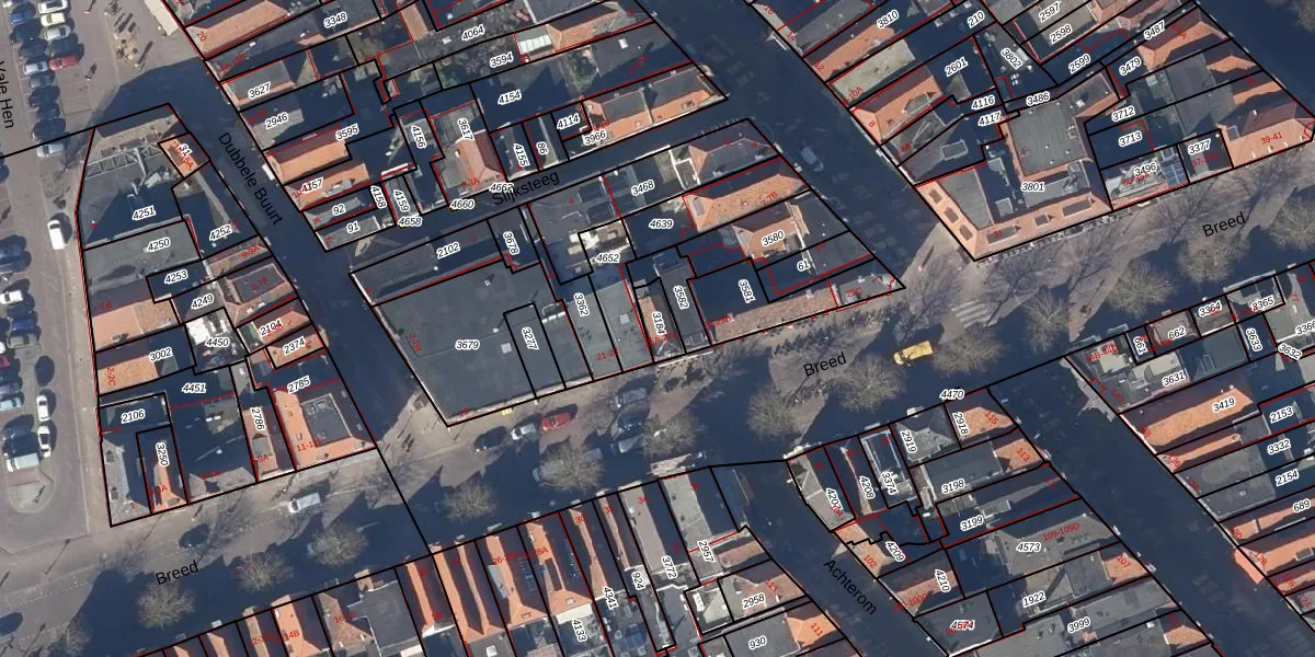 Het perceel waarop Breed 25-A staat heeft een oppervlakte van 55 m². Dit is een klein perceel. De perceeloppervlakte wordt geregistreerd door het Kadaster. Gedetailleerde informatie over de maten van dit perceel kunt u vinden in het rapport Kadastrale kaart met maatvoering van Breed 25-A.