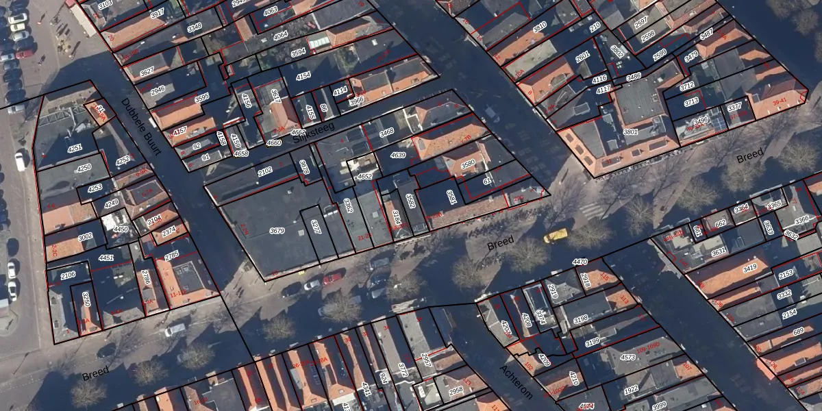 Het perceel waarop Breed 27-B staat heeft een oppervlakte van 89 m². Dit is een klein perceel. De perceeloppervlakte wordt geregistreerd door het Kadaster. Gedetailleerde informatie over de maten van dit perceel kunt u vinden in het rapport Kadastrale kaart met maatvoering van Breed 27-B.