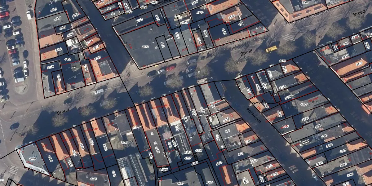 Het perceel waarop Breed 32 staat heeft een oppervlakte van 89 m². Dit is een klein perceel. De perceeloppervlakte wordt geregistreerd door het Kadaster. Gedetailleerde informatie over de maten van dit perceel kunt u vinden in het rapport Kadastrale kaart met maatvoering van Breed 32.
