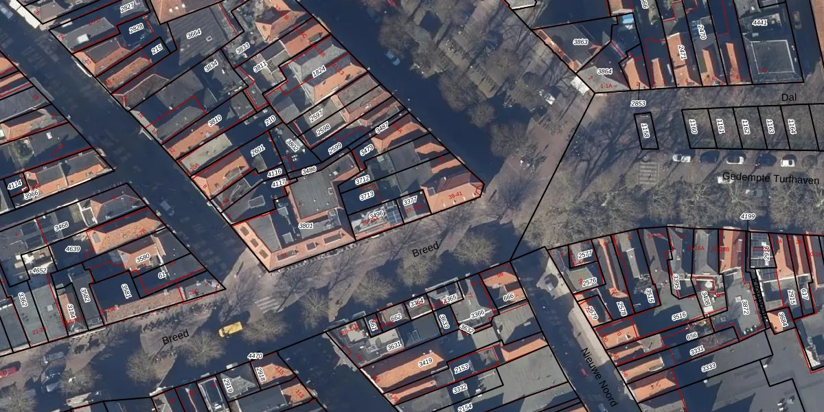 Het perceel waarop Breed 37-A staat heeft een oppervlakte van 46 m². Dit is een klein perceel. De perceeloppervlakte wordt geregistreerd door het Kadaster. Gedetailleerde informatie over de maten van dit perceel kunt u vinden in het rapport Kadastrale kaart met maatvoering van Breed 37-A.