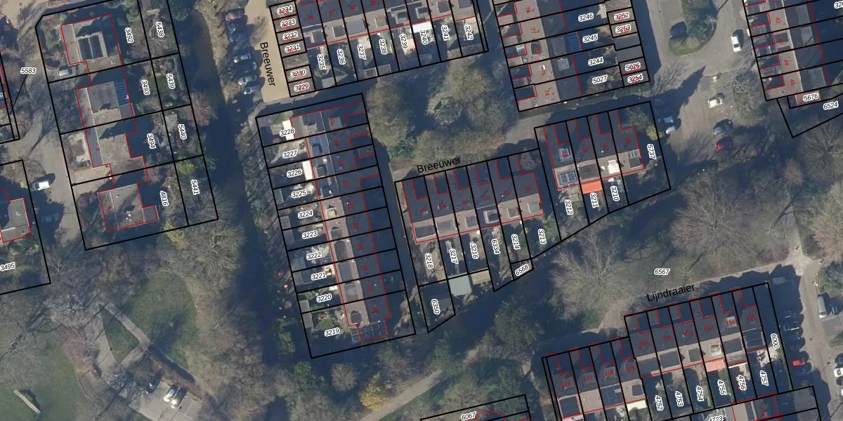 Het perceel waarop Breeuwer 55 staat heeft een oppervlakte van 185 m². Dit is een middelgroot perceel. De perceeloppervlakte wordt geregistreerd door het Kadaster. Gedetailleerde informatie over de maten van dit perceel kunt u vinden in het rapport Kadastrale kaart met maatvoering van Breeuwer 55.