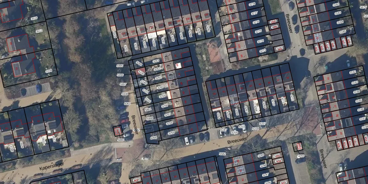 Gebruik de zoekbalk of klik op een perceel voor informatie over de adressen binnen dit perceel.