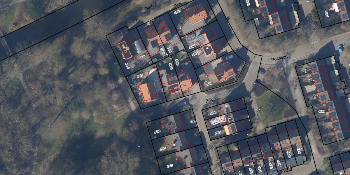 Het perceel waarop Brik 119 staat heeft een oppervlakte van 235 m². Dit is een middelgroot perceel. De perceeloppervlakte wordt geregistreerd door het Kadaster. Gedetailleerde informatie over de maten van dit perceel kunt u vinden in het rapport Kadastrale kaart met maatvoering van Brik 119.