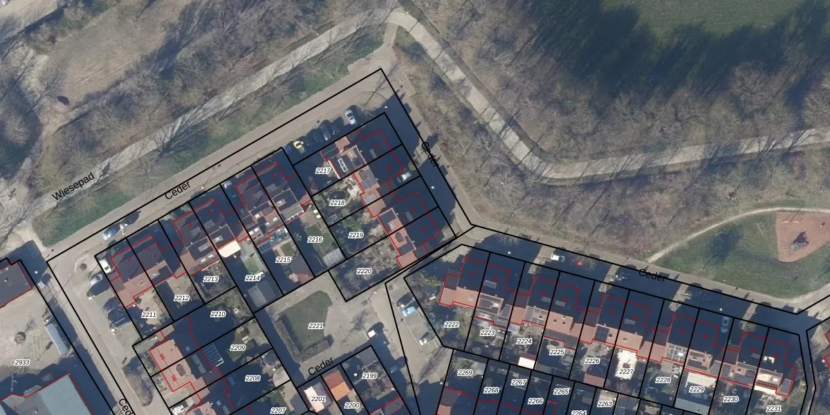 Het perceel waarop Ceder 11 staat heeft een oppervlakte van 224 m². Dit is een middelgroot perceel. De perceeloppervlakte wordt geregistreerd door het Kadaster. Gedetailleerde informatie over de maten van dit perceel kunt u vinden in het rapport Kadastrale kaart met maatvoering van Ceder 11.