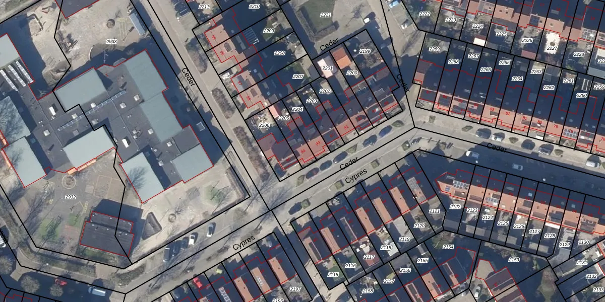 Het perceel waarop Ceder 94 staat heeft een oppervlakte van 126 m². Dit is een middelgroot perceel. De perceeloppervlakte wordt geregistreerd door het Kadaster. Gedetailleerde informatie over de maten van dit perceel kunt u vinden in het rapport Kadastrale kaart met maatvoering van Ceder 94.