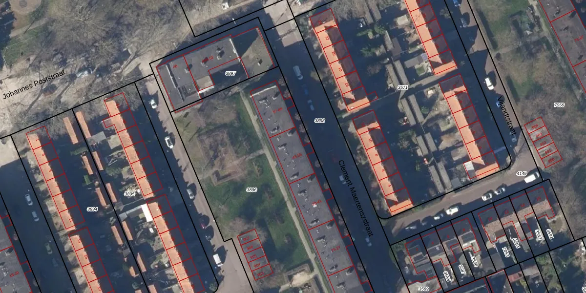 Het perceel waarop Clement Maertenszstraat 49 staat heeft een oppervlakte van 3638 m². Dit is een zeer groot perceel. De perceeloppervlakte wordt geregistreerd door het Kadaster. Gedetailleerde informatie over de maten van dit perceel kunt u vinden in het rapport Kadastrale kaart met maatvoering van Clement Maertenszstraat 49.