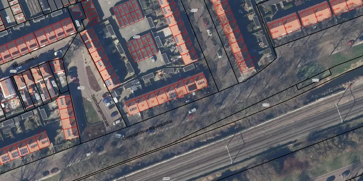 Het perceel waarop Commandeur Ravenstraat 32 staat heeft een oppervlakte van 4232 m². Dit is een zeer groot perceel. De perceeloppervlakte wordt geregistreerd door het Kadaster. Gedetailleerde informatie over de maten van dit perceel kunt u vinden in het rapport Kadastrale kaart met maatvoering van Commandeur Ravenstraat 32.