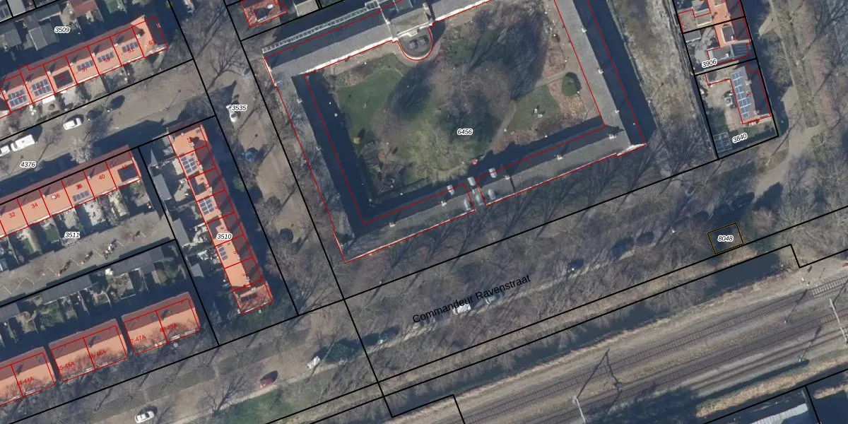 Het perceel waarop Commandeur Ravenstraat 50 staat heeft een oppervlakte van 6445 m². Dit is een zeer groot perceel. De perceeloppervlakte wordt geregistreerd door het Kadaster. Gedetailleerde informatie over de maten van dit perceel kunt u vinden in het rapport Kadastrale kaart met maatvoering van Commandeur Ravenstraat 50.