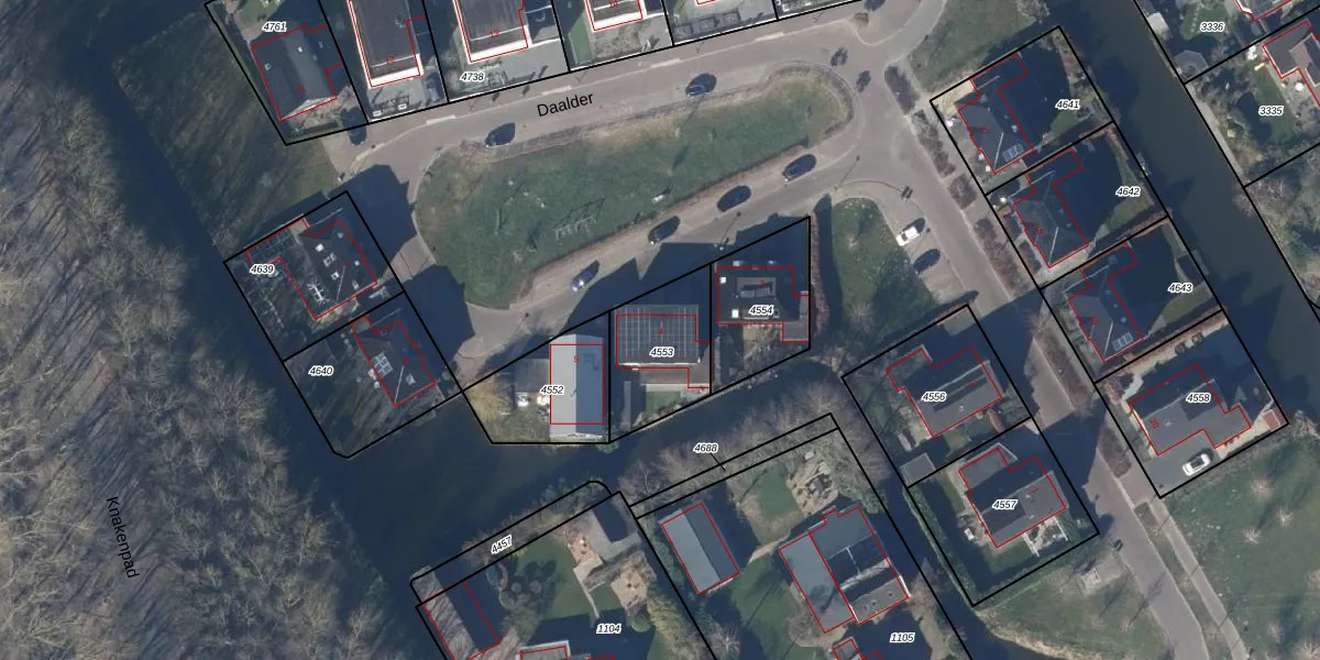 Het perceel waarop Daalder 4 staat heeft een oppervlakte van 305 m². Dit is een groot perceel. De perceeloppervlakte wordt geregistreerd door het Kadaster. Gedetailleerde informatie over de maten van dit perceel kunt u vinden in het rapport Kadastrale kaart met maatvoering van Daalder 4.