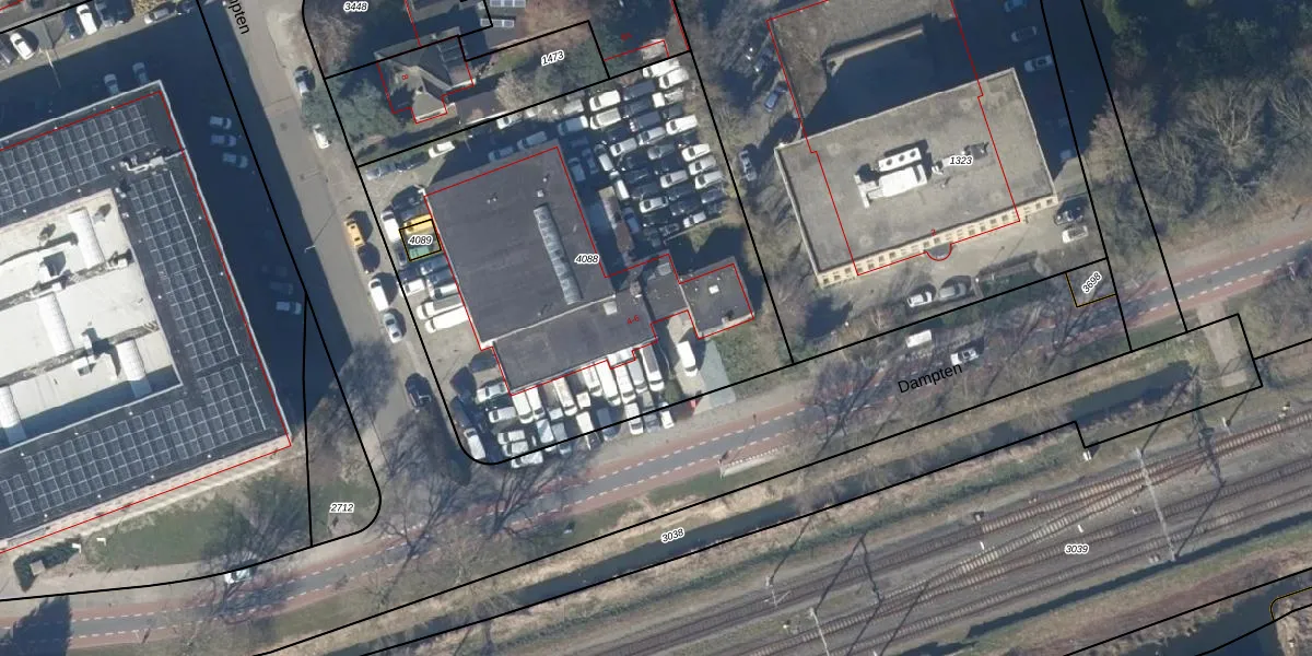 Het perceel waarop Dampten 4-109 staat heeft een oppervlakte van 2608 m². Dit is een zeer groot perceel. De perceeloppervlakte wordt geregistreerd door het Kadaster. Gedetailleerde informatie over de maten van dit perceel kunt u vinden in het rapport Kadastrale kaart met maatvoering van Dampten 4-109.