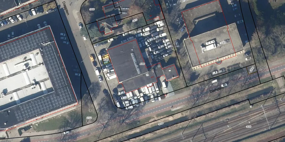 Het perceel waarop Dampten 4-120 staat heeft een oppervlakte van 2608 m². Dit is een zeer groot perceel. De perceeloppervlakte wordt geregistreerd door het Kadaster. Gedetailleerde informatie over de maten van dit perceel kunt u vinden in het rapport Kadastrale kaart met maatvoering van Dampten 4-120.