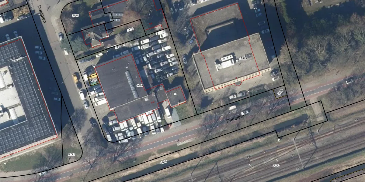Het perceel waarop Dampten 4-413 staat heeft een oppervlakte van 2608 m². Dit is een zeer groot perceel. De perceeloppervlakte wordt geregistreerd door het Kadaster. Gedetailleerde informatie over de maten van dit perceel kunt u vinden in het rapport Kadastrale kaart met maatvoering van Dampten 4-413.