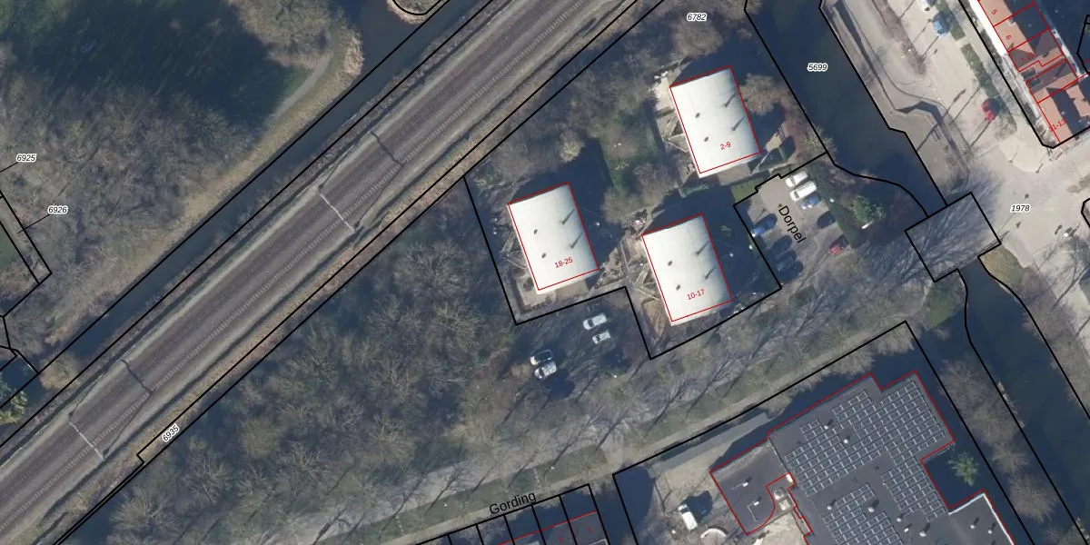 Het perceel waarop Dorpel 23 staat heeft een oppervlakte van 2705 m². Dit is een zeer groot perceel. De perceeloppervlakte wordt geregistreerd door het Kadaster. Gedetailleerde informatie over de maten van dit perceel kunt u vinden in het rapport Kadastrale kaart met maatvoering van Dorpel 23.